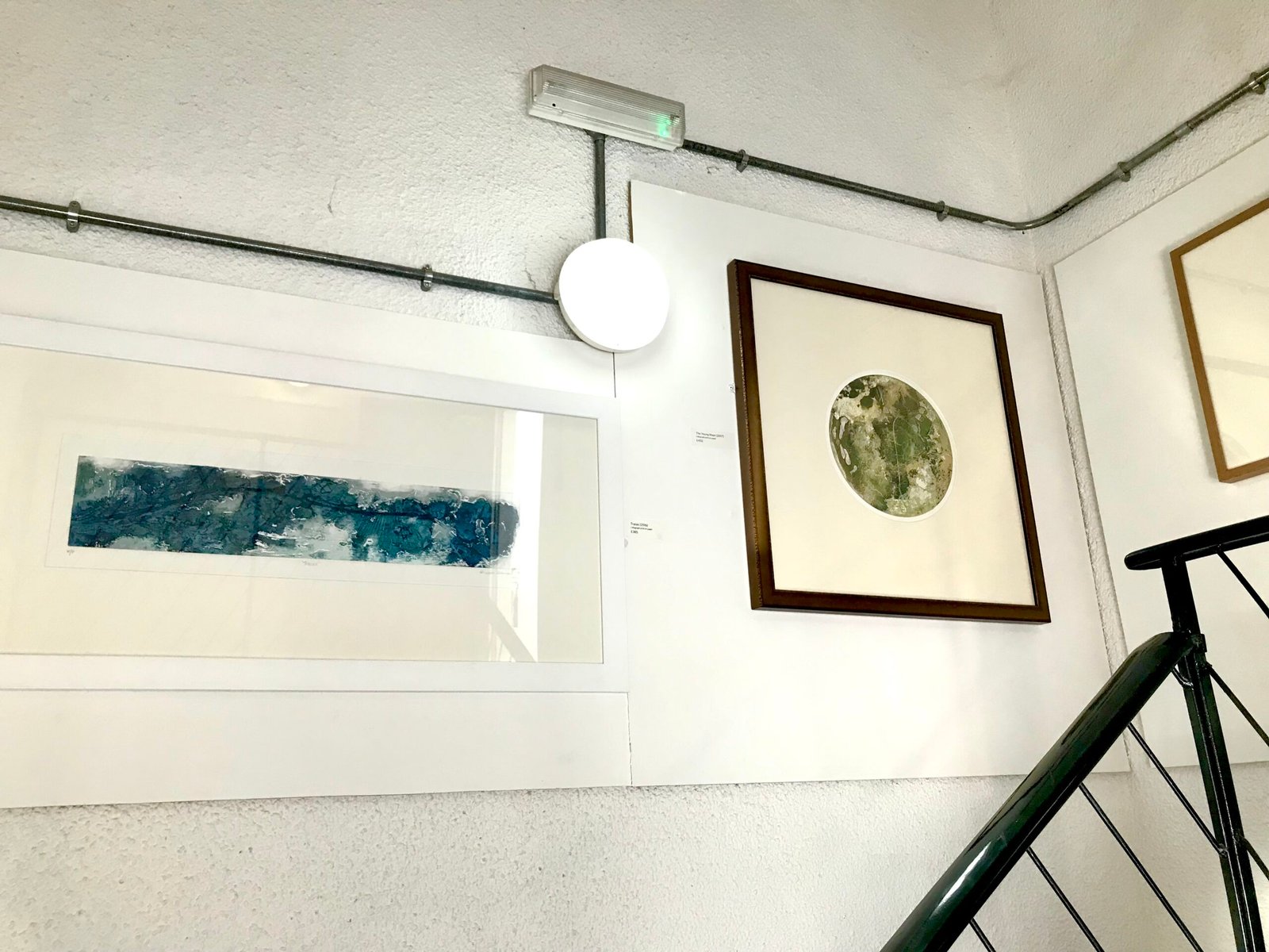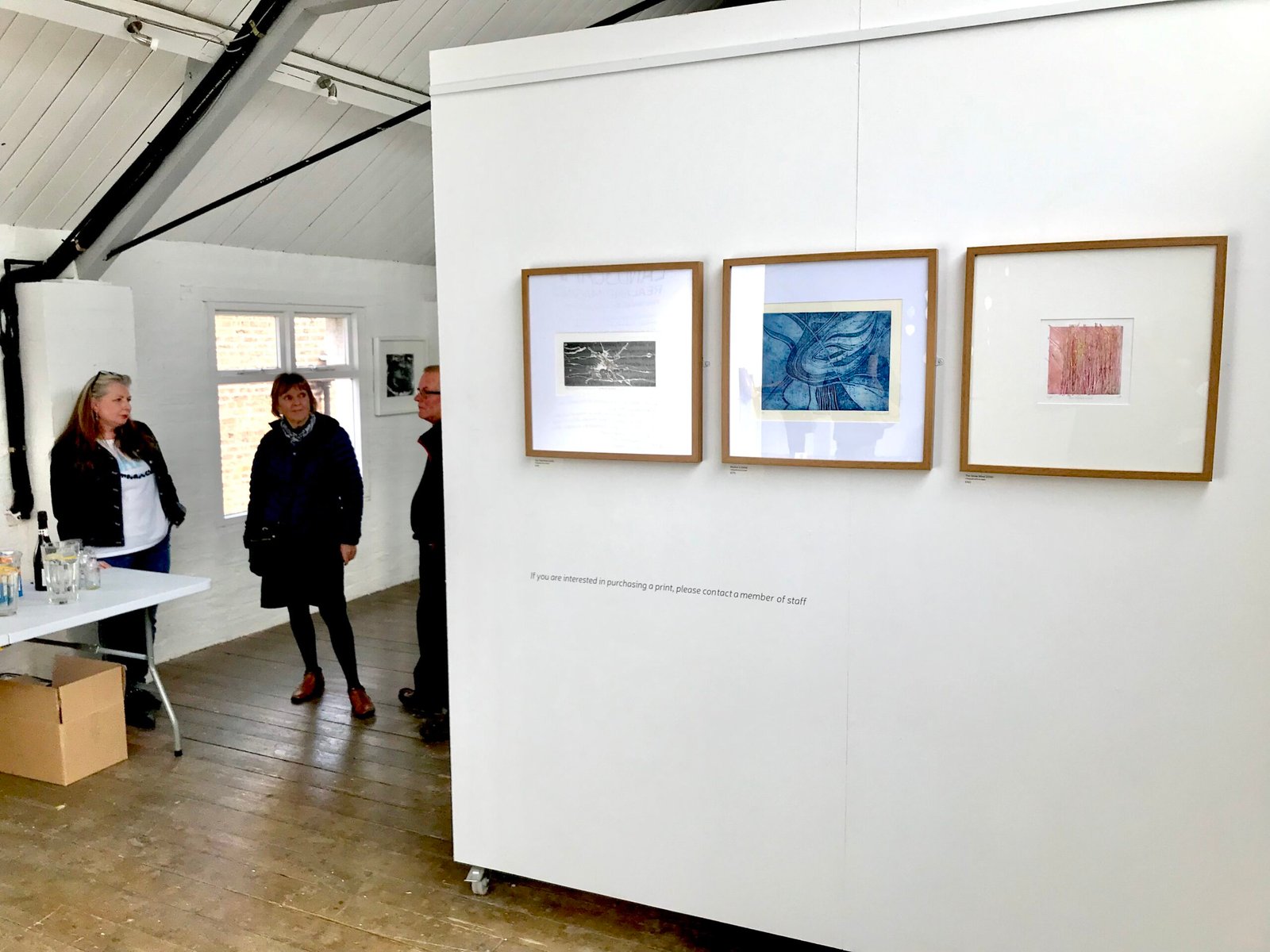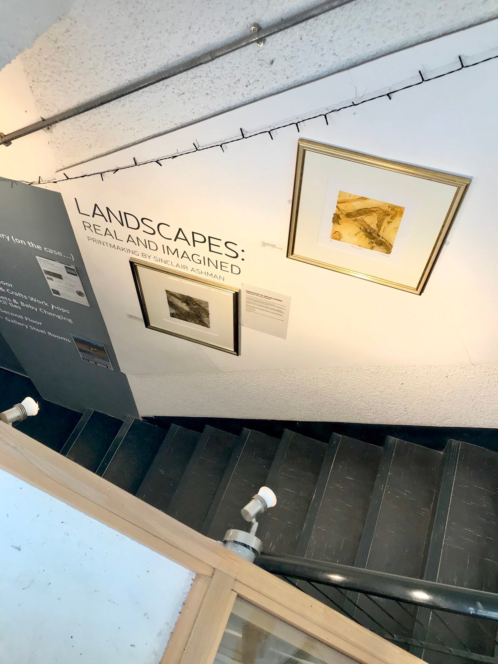 After hosting a couple of printmaking workshops at The Steel Rooms, we agreed that I would create an exhibition, stretching from the downstairs café, up some stairs and into the large upstairs gallery space. I decided to base much of the show on work that was inspired by my trip to Iceland two years before. This meant a first outing for my prints featuring poured varnish and carborundum powder, built up in thick layers on birch plywood. Other works featured experiments with faux metal leaf applied as chine collé, prints from plates made with burnt adhesive tapes, and a segmented landscape, assembled and printed from seven different plates.