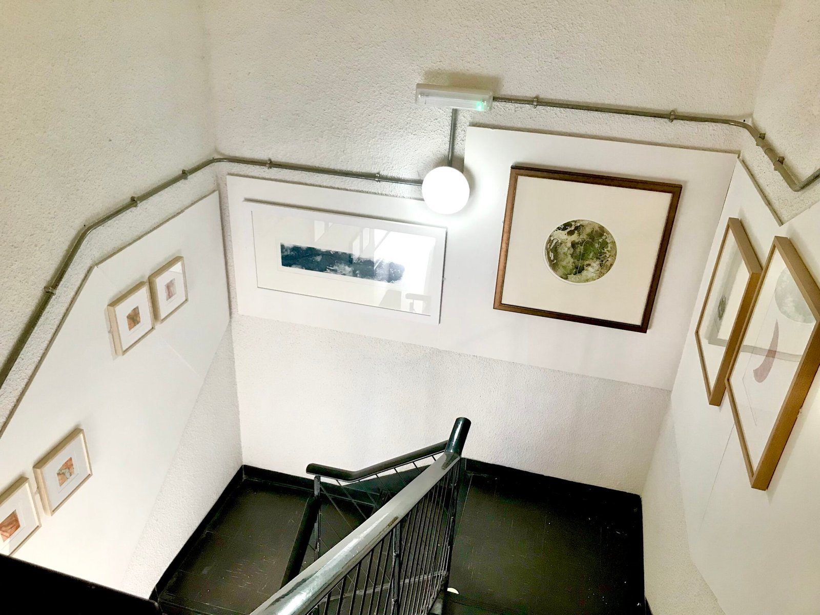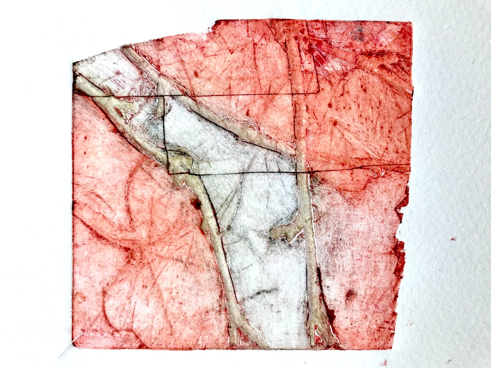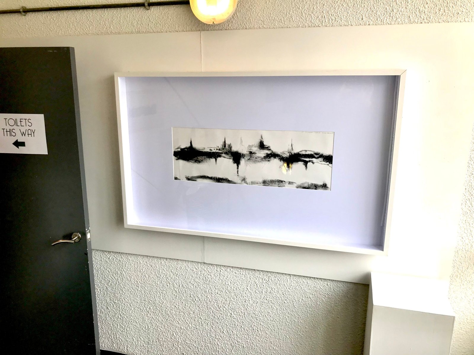 After hosting a couple of printmaking workshops at The Steel Rooms, we agreed that I would create an exhibition, stretching from the downstairs café, up some stairs and into the large upstairs gallery space. I decided to base much of the show on work that was inspired by my trip to Iceland two years before. This meant a first outing for my prints featuring poured varnish and carborundum powder, built up in thick layers on birch plywood. Other works featured experiments with faux metal leaf applied as chine collé, prints from plates made with burnt adhesive tapes, and a segmented landscape, assembled and printed from seven different plates.